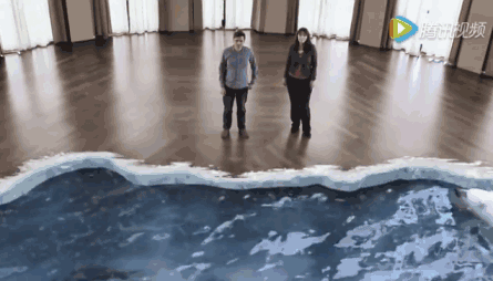 三維投影通過使用薄紗和其他一些工作來實現——如超細顆粒的水,氣溶膠等,利用高壓噴嘴來表現出真正有體積感的圖像,從技術上來講,這種技術是沒有尺寸和規模限制的,可以無限大并且可以使用跟蹤技術(深度傳感器和圖像分析)來允許觀眾和投影之間的交互。