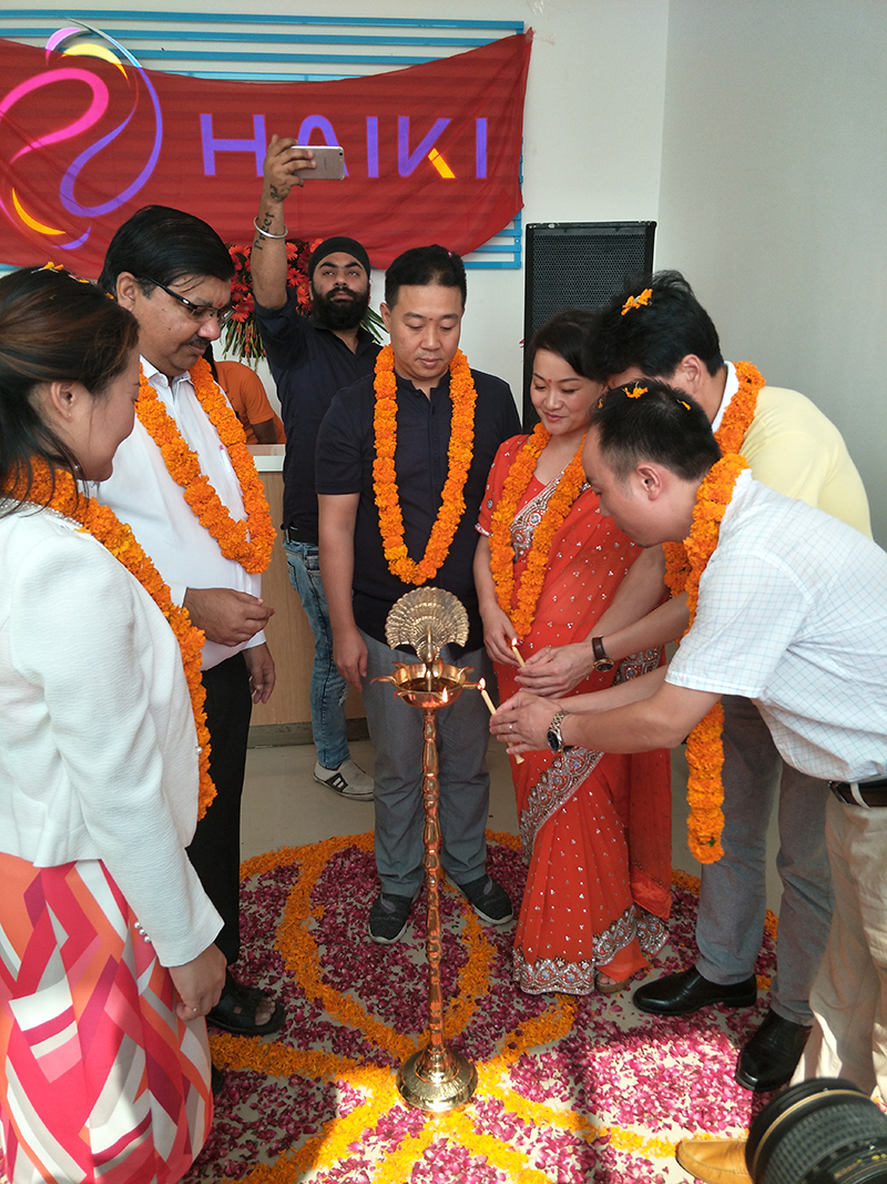 2017年10月15日,海淇股份董事長羅淇先生、總經理鄒漁女士、印度海淇董事Anil Ji Garg等領導移步神燈周圍,共燃印度神燈,舉行印度傳統的點燈儀式。祝賀公司及來賀嘉賓包括vivo 、HUAWEI、TRANSSION、GIONEE、MCM李格、Henwa Solutions王永林,Sunwoda Gavin Xie,華夏雙贏Grant Xia,Anil Ji Garg,Manoj Gupta,Ms Deepali,以及Daily of India媒體記者等。