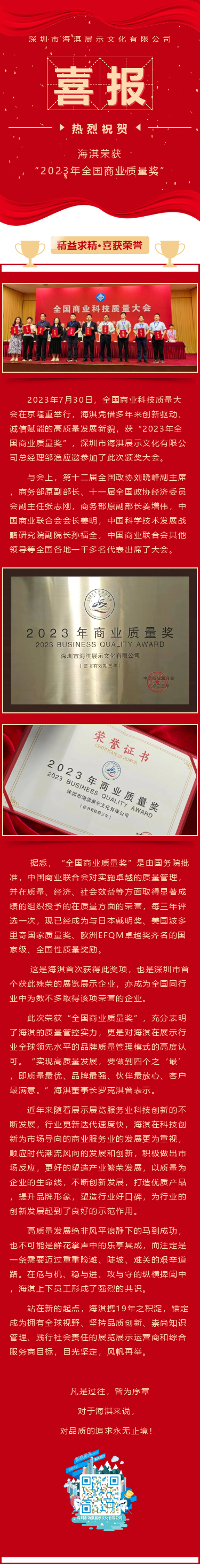 喜報 | 海淇榮獲“2023年全國商業質量獎”
