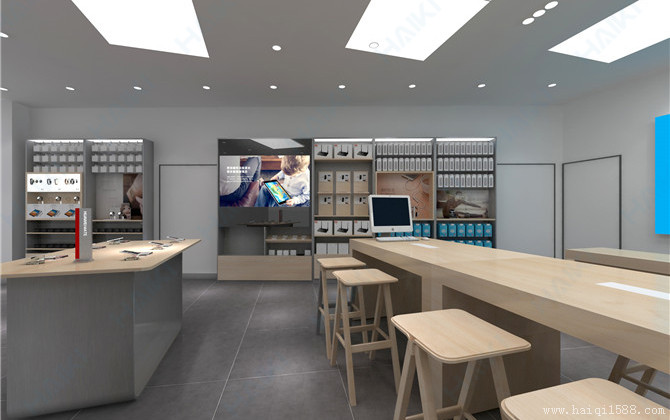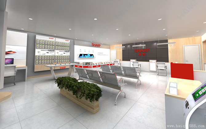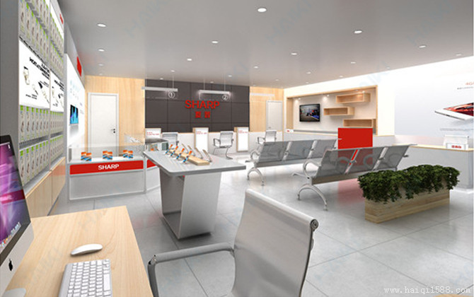 夏普整店設(shè)計-氛圍干凈、明亮,金屬質(zhì)感柜臺的點綴,店面整體的呈現(xiàn)效果更佳,對消費者的眼睛視覺具有強烈的吸引力。?每一個源于靈魂和想象的設(shè)計都注入感情,用創(chuàng)意和想象來裝點著每一部作品。